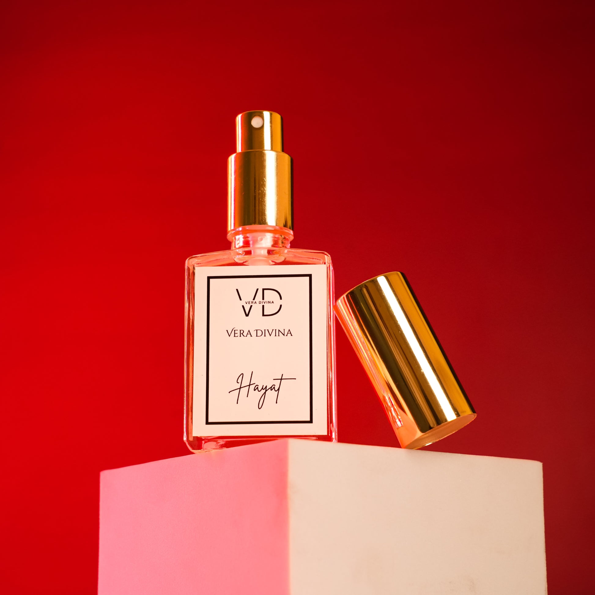 Hayat by Vera Divina is a captivating and intensely sweet as well as strong fragrance designed for the modern woman who exudes confidence and elegance. Whether it's for a lively party, a special occasion, or even daily wear, this long-lasting perfume creates an unforgettable presence. Hayat is a highly intense perfume oil that combines the uplifting energy of fresh citrus with a bold blend of spicy and woody notes, resulting in a rich, multifaceted scent. The citrus accords provide an invigorating burst, while the warm, spicy undertones and earthy woods create a depth that elevates the fragrance, making it both sweet and strong. Perfect for women who want a scent that stands out and lasts all day, Hayat is a fragrance that enhances every moment with its rich complexity and powerful aura.